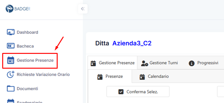 All’interno della sezione “Gestione Presenze” sono ora presenti i soli menu “Gestione Presenze”, “Gestione Turni” e “Progressivi”: