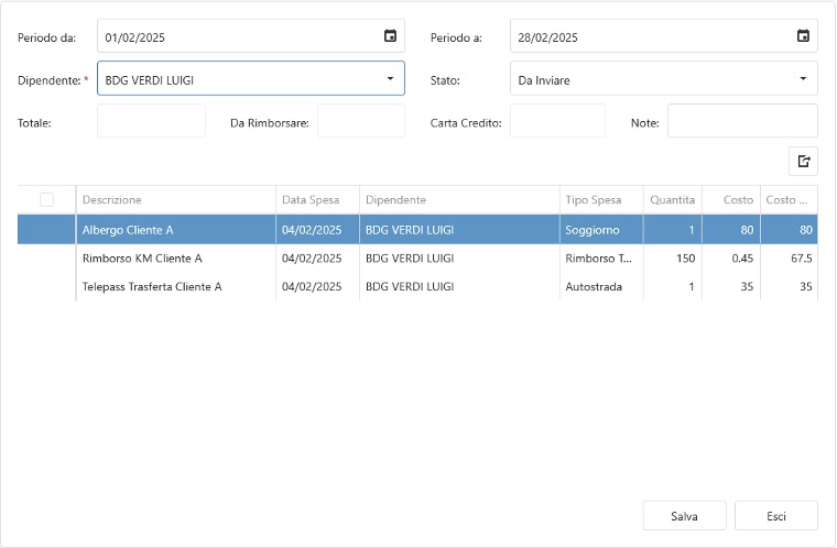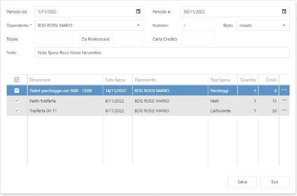 In questa sezione è possibile gestire e consultare le note spese emesse o da emettere ai dipendenti.