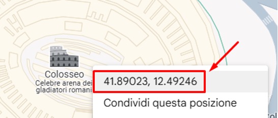 Potete ottenere le coordinate ad esempio su Google Maps, premere tasto destro sul punto della mappa desiderato, quindi cliccare con tasto sinistro sulle coordinate per copiarle: